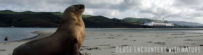 Departure from the private tour assembly area, Port Chalmers is 9.30am to guide you on a memorable full day tour of the rugged Otago Peninsula, soaking in its scenery and seeing the unique wildlife up close. Those choosing this Albatross option leave the tour group for one hour to join the Royal Albatross tour viewing the Albatross nesting area and watch Royal Albatross soaring majestically around their breeding area at Taiaroa headland located at the tip of the Otago peninsula. Following our visit here we enjoy a light lunch somewhere enroute. Following lunch, we prepare for the days highlight, a visit to Elm Wildlife Tours private conservation area. Here we observe up close the hyper activity in a New Zealand fur seal rookery, males fighting, pups playing and females trying to get some rest. On an adjacent sandy beach in a lovely bay our next close encounter meets and observes two of the world’s rarest creatures, Hooker Sea lions resting, and Yellow-eyed penguins with young in their nesting area. Yellow Eyed Penguins and their young are usually very active throughout most of the cruise ship season; however there are periods after their chicks fledge when very few are seen. You will also see the 'Little penguin’; the world’s smallest, resting in their nest burrows. The return journey includes views of Dunedin city and a visit to Baldwin Street, (the world’s steepest street) before returning to your ship 45 to 60 minutes before sailing.